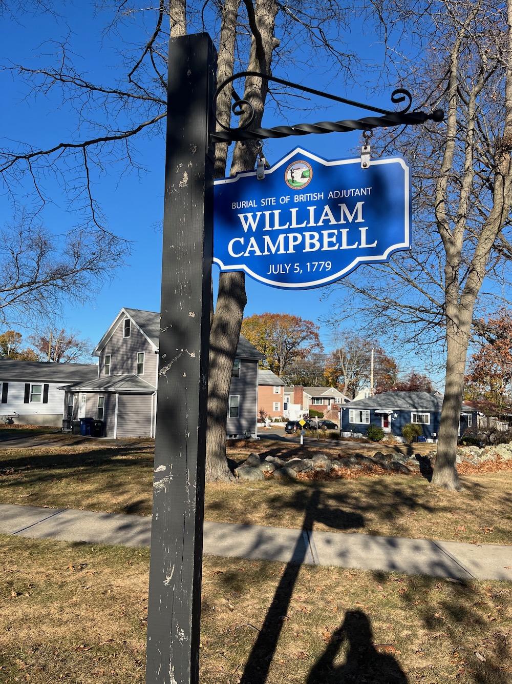 The granite monument, which was erected by the New Haven Colony Historical Society on July 4, 1891, marks Campbell’s approximate final resting place.
