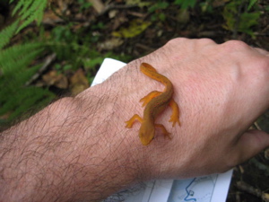 Perhaps two lovely little red efts, which are actually strikingly orange?
