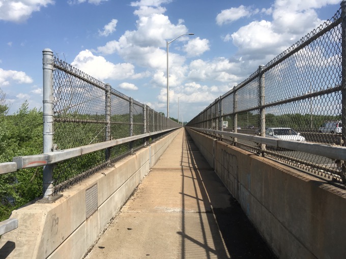 The trail is basically a protected sidewalk next to I-291, the relatively new highway across the Connecticut River that allows motorists to avoid downtown Hartford. I’m not big on highway development, but this one was a good one.