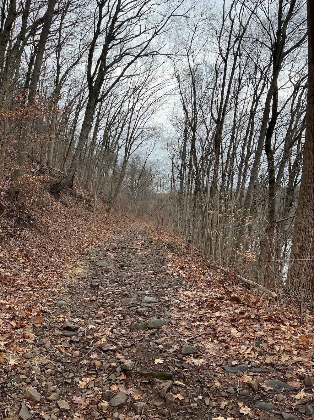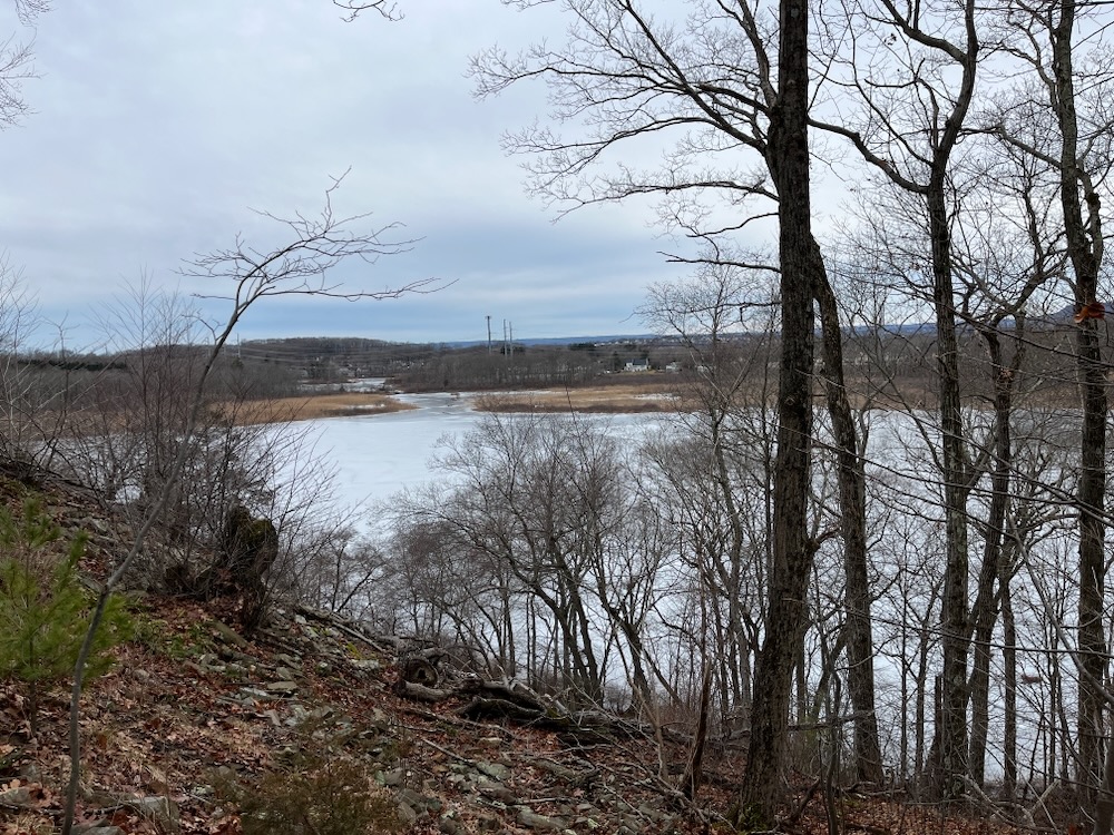 The trail here starts from a pull-out along the access road before it heads down to the boat launch area. It is wide and straight, but not carefree walking. I’m going to steal a sentence from ExploreCT’s Matt: