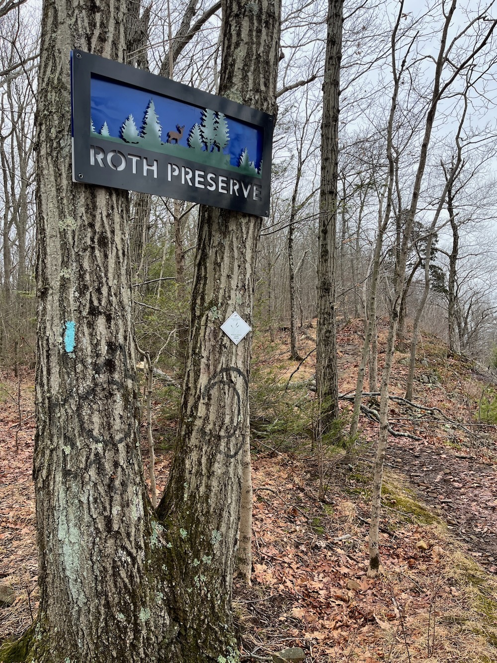 And that, my friends, was pretty much that. I walked the blue-blazed CFPA trail, part of the New England National Scenic Trail, south for a minute just because I wanted to see the Roth Preserve sign. Because it’s cool.