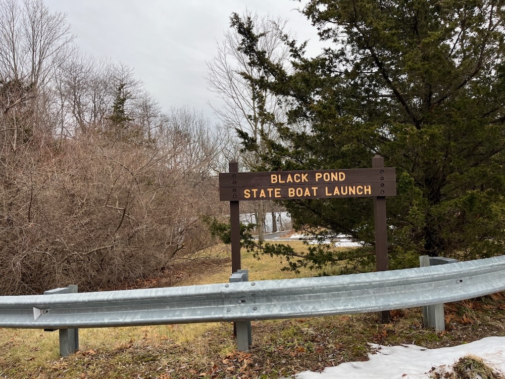 Black Pond was a 100 acre tract purchased by the state in 1919 for $1,500 to be used as a wayside state park for travelers. However, nothing really happened with it and it languished in obscurity. Not much has changed with that over a hundred years later. Ironically, during my visit on a chilly gray January Saturday, the lot was pretty full and a bunch of people were out on the pond ice fishing.