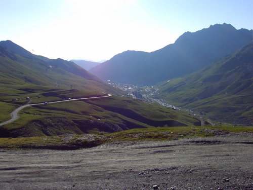 We stayed in Cauterets, maybe 30 miles from the finishing resort of La Mongie. We’d been told that the road over the mountain would be closed 24 hours in advance of the Tour, but whatever, we’d go see how far up we could get. We awoke around 5AM, drove up and over the Tourmalet with no one stopping us. At the top, I met Levi Leipheimer’s brother (see below) and we just absorbed the Pyreneen beauty. It’s ridiculous.