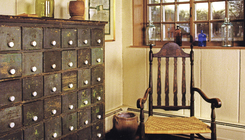 Onto the medical office where there’s a collection of historic medical instruments and a bunch of fake pills and scales and stuff for young visitors to play with. Here you can open drawers in the apothecary chest and desk, page through medical texts, and look through reproduction receipts made from Dr. Chaffee’s actual practice.