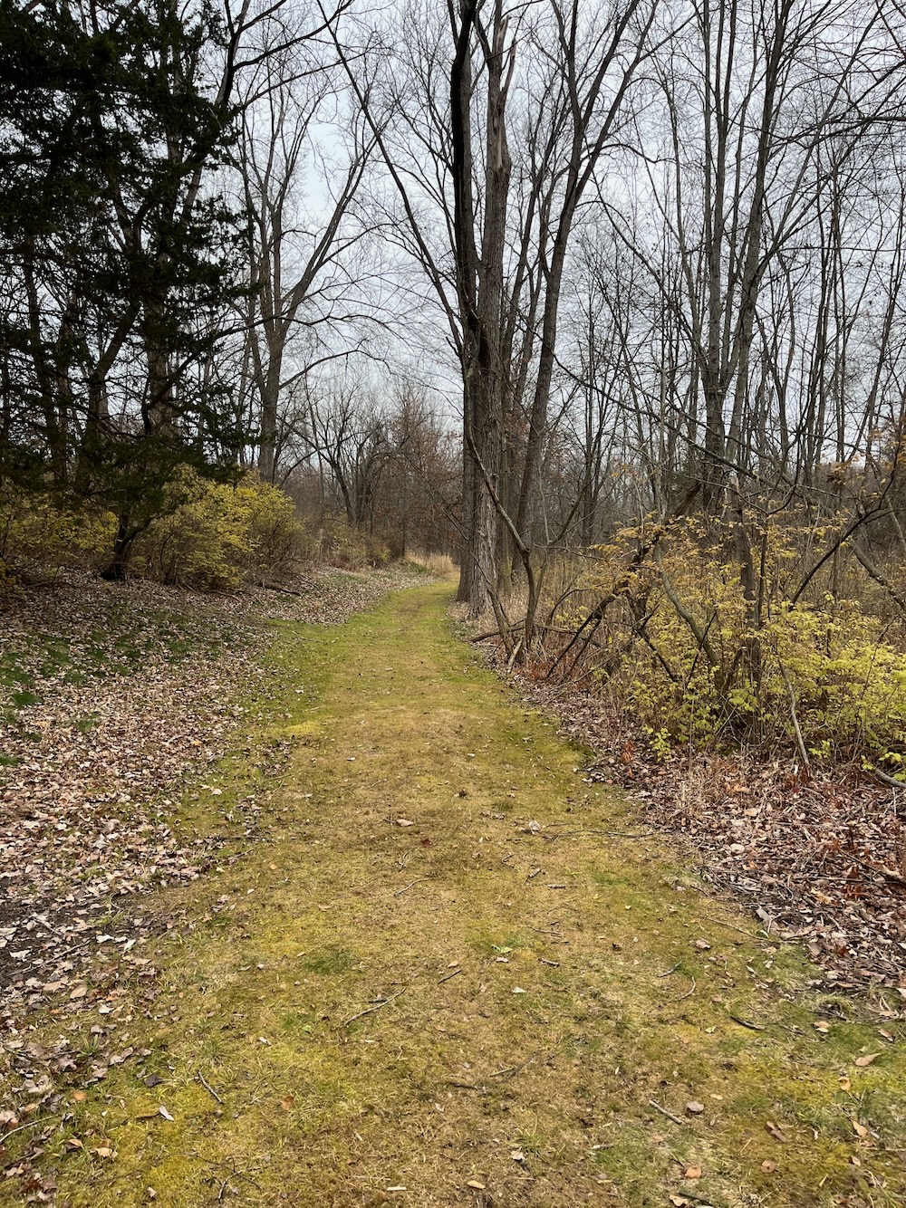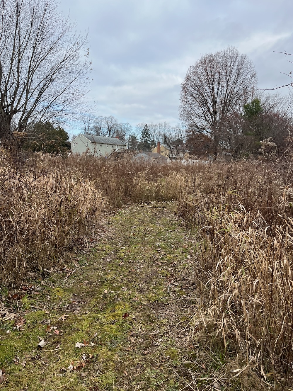 And let’s be clear: Evans Family Meadows is not a property that should inspire anyone to change their lifestyle. It is flat, fairly featureless, short, choked with invasives, and passes behind houses, has a road walk, nears a train track, and passes by some illicit dumping.