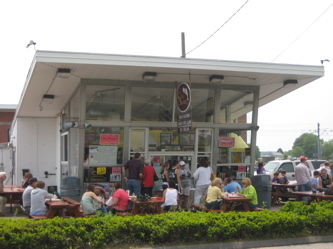 The Sea Swirl is the second Roadfood joint that occupies a former Carvel roadside stand (The Ridgefield Ice Cream Shop is the other). That means nothing except that the outdoor “dining area” is right next to a busy road – Route 1 in Sea Swirl’s case. But no matter, the Swirl gets so many accolades from such luminaries as The New York Times, Esquire and Rachel Ray (ahem), that location should certainly not be a deterrent.