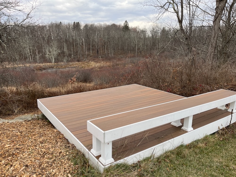 It ends at a viewing platform over the marsh. About which the Land Trust’s Birdsall says, “The scenery delights the eyes, and the sound of the breeze and the birds is a balm for the soul.”