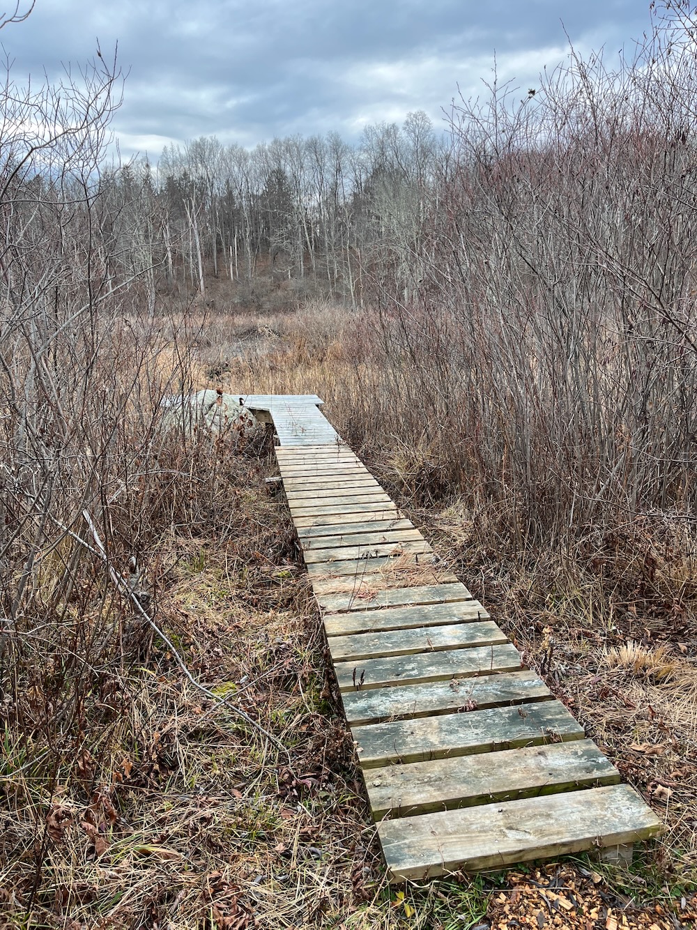 Back to get another turkey at Bunnell Farm (still worth the effort and price every year) and have had this nagging urge to come back here and complete the very short trail. Did I really miss the extension past the viewing platform? How? Did it really exist?
