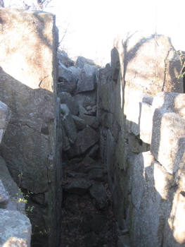 Okay, it’s really not that bad; this is Connecticut after all. But it is a fun scramble and there are definitely some cool rock formations, cliffs and I’ve read there are “caves” around. I didn’t go off in search of any of the caves, as they’re really just chambers under fallen rocks, but I did spend some time checking out the chasm thing up near the top of the giant’s chest – yes, back where the green trail ended.