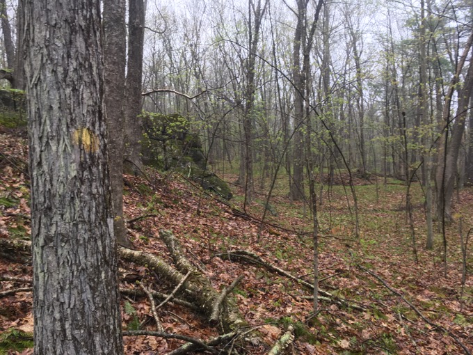 It’s just the green trail. And it’s really nice; following Leadmine Brook along a flat, wide path. Despite the rain, or perhaps because of it, my walk along the stream was peaceful and pleasant. The green trail loops back to the picnic area, but I forged ahead, continuing south via the yellow trail.