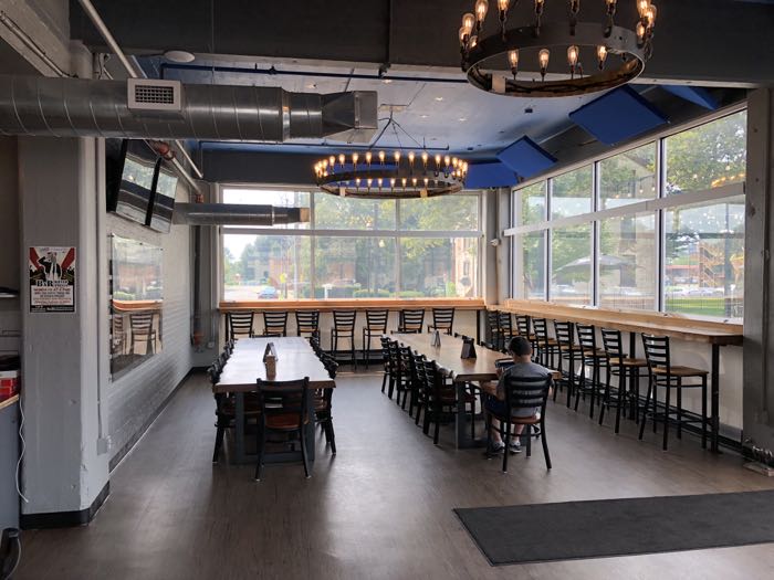 The set up of the taproom here is quite different from the mothership in Bloomfield. There, some comfy chairs and couches line a smallish room with stand-up tables and bar. Here, there’s more of a communal spirit with long tables and a sit down bar. Also, there’s a small room down the hallway that accommodates meetings.