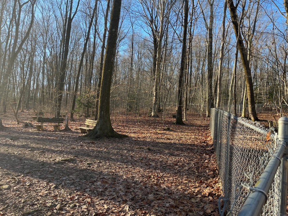Granted, many people are very familiar with the first 300 yards or so of the trail. For it is the access to the town’s rather impressive woodland dog park. It offers an opportunity for dogs to safely run leash-free, and owners to socialize with other dog lovers. The park consists of approximately one acre of woodland, enclosed with a continuous 5′ tall chain link fence. There are separate fenced areas for both large and small (or timid) dogs.