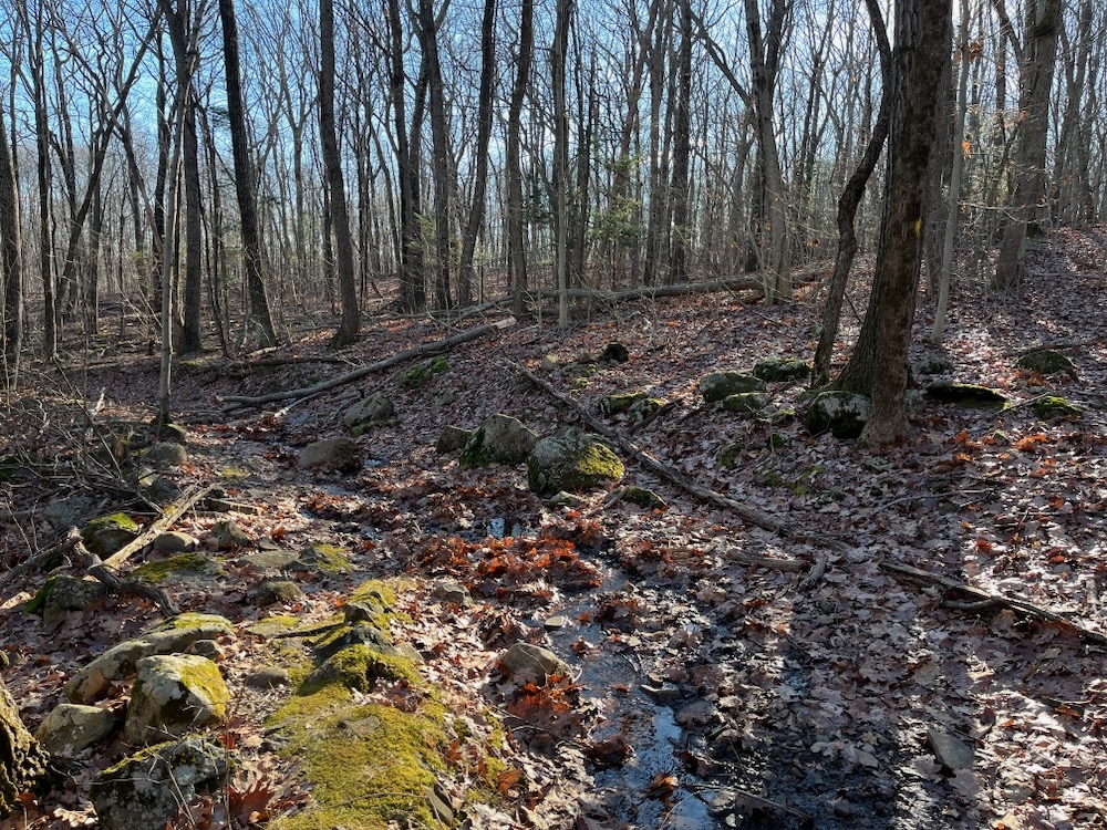 The brook off in the woods looks quite nice and there are some interesting smoothed out stone features along the way. I definitely prefer the walk up, however, and would recommend the clockwise loop direction. You just want to bound down this side along this Jeep trail.