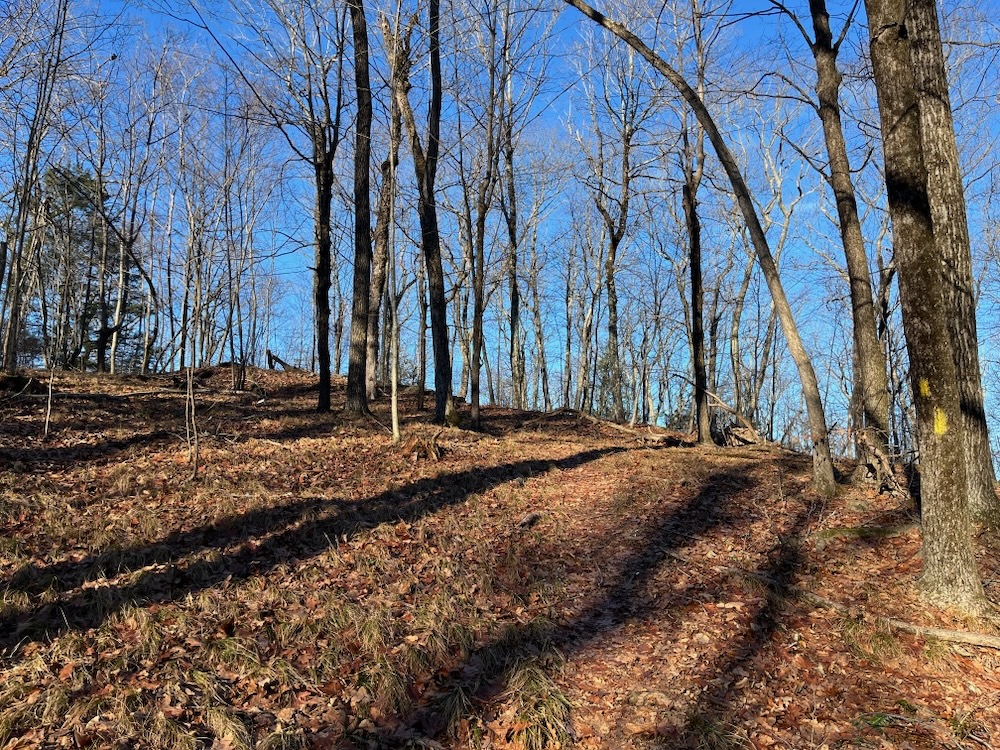 Continuing on, up the hill, the trail immediately becomes less clear. The blazes are still prominent enough, but no one is going through here with loppers and chainsaws more than once or twice a year.
