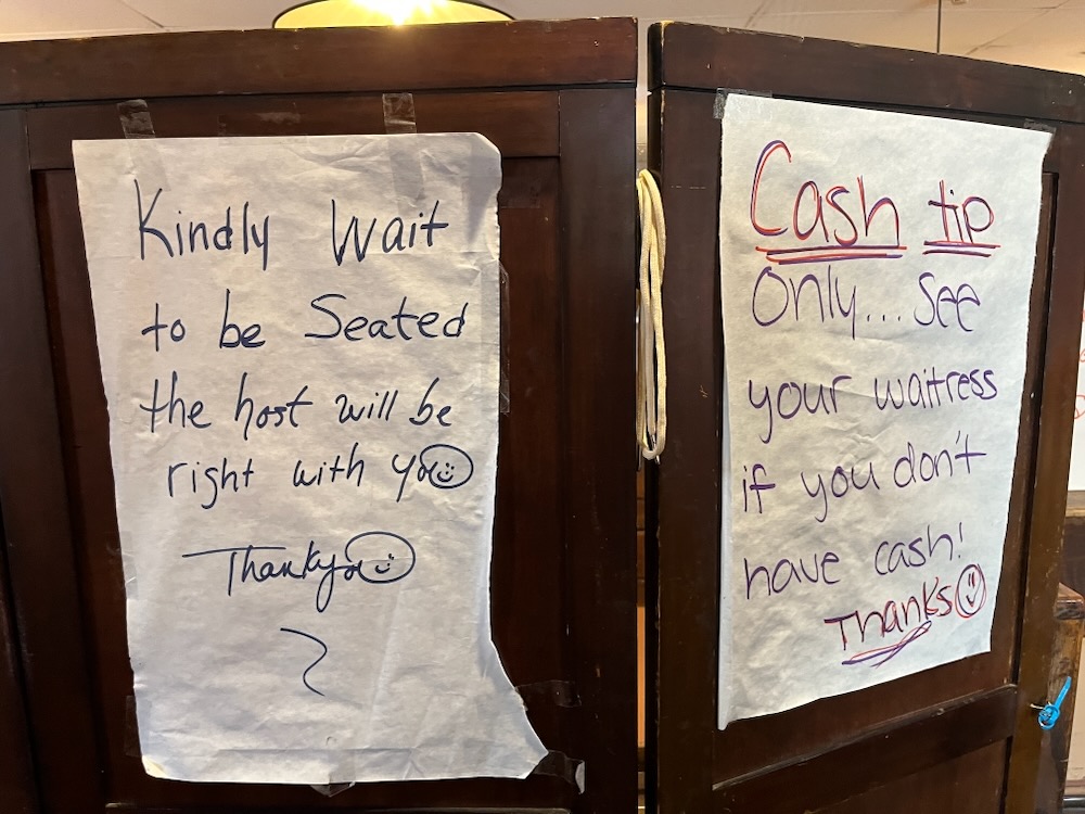 Roseland certainly has the vibe. Old building and a business that has been doing their thing just as long as Pepe’s and Sally’s. Hand written notes about “cash only tips” as you enter. Bathrooms that are way too small. The Foxon Park soda cooler jammed into a storage area just because. Perfect thin crust simple pies that include a fresh tomato variety, a plain variety, and of course a fresh-shucked white clam pie.