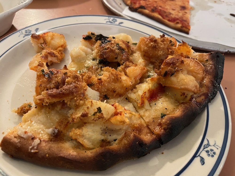 While this isn’t the Shrimp Oreganato Pizza that Roadfood included on the list I’ve been eating my way through, it’s close enough. If you happened on this page from that list, deal with it.