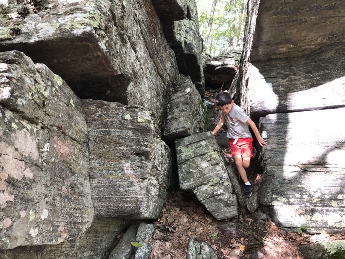 Looking back at my 2008 hike through here, I’m annoyed that I sort of glossed over these things. Granted, we did hike through a forest fire that day, but still. The official blazed trail through here is meant to be fun. Yes, this whole Bear’s Den thing is patently absurd and you can simply walk around it, and… I’ll let the BLT explain: