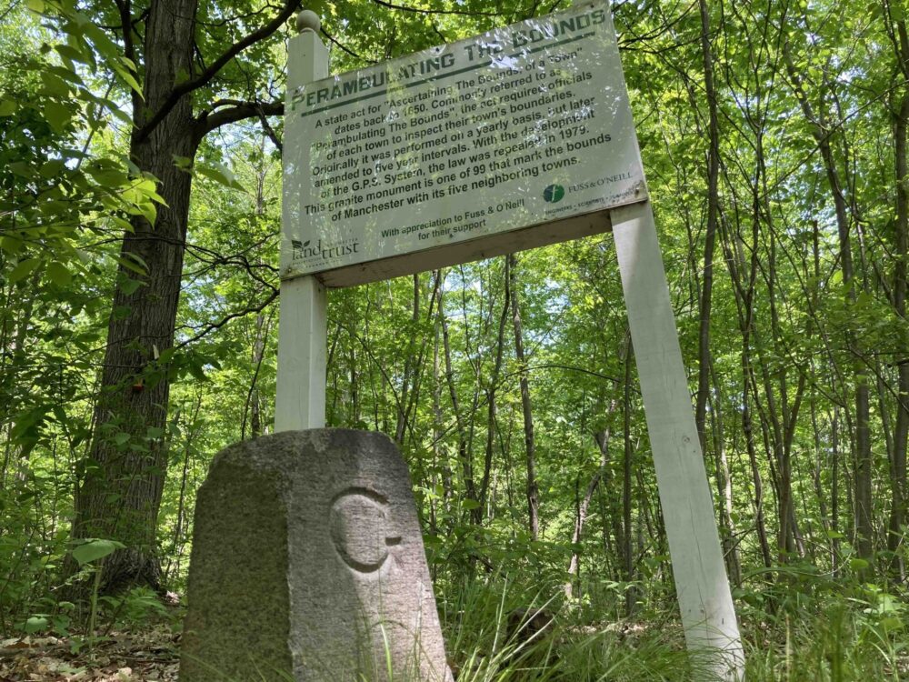 Update: the newer map in 2025 is properly oriented. And there’s also a perambulation sign in the woods at one of these border stones: