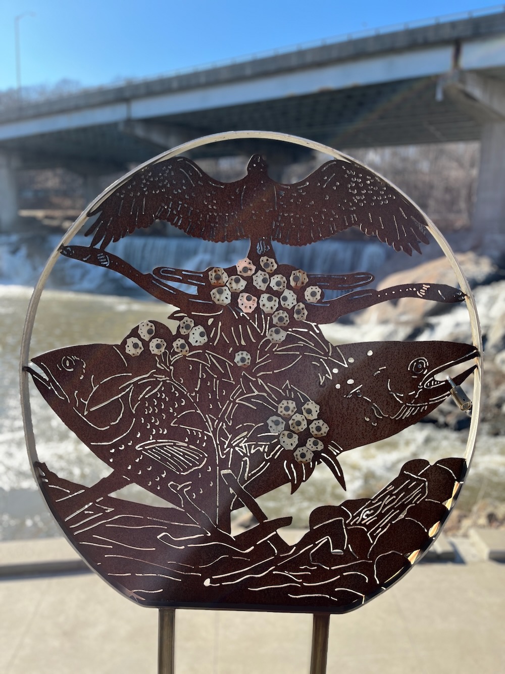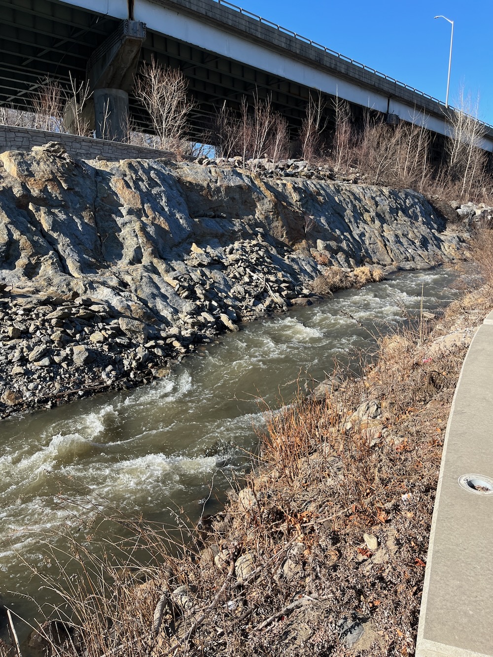 The bypass is pretty cool. When it was built in 2015, it was the 65th fishway in the state. (Really?!) It’s relatively huge – one of the largest on the east coast – and had to be constructed in a way that kept the dam intact and didn’t mess with the integrity of Route 8’s supports. The bypass channel is about 500 feet long and 25 feet wide and much of it was hammered out of bedrock. It was created to include riffles and pools and to be as natural as possible.