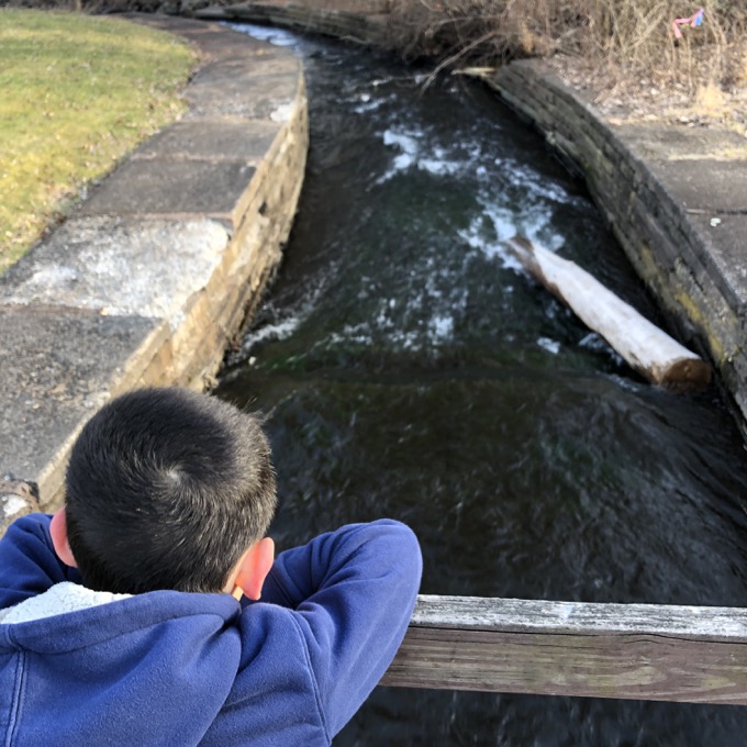 After all, Spice Bush Swamp is only a few minutes down Mountain Road from my house. And so, one day after Quarantine School/Work, due to COVID-19, Calvin and I went to check it out. I had read that not only were there actual trails now, but that the town has done some reclamation work on the pond itself and the retaining walls for the streams.