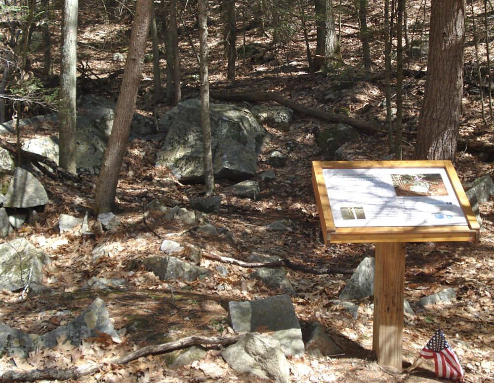 At this site was a village made up of Native Americans, African Americans, and whites who in their time were considered outcasts. The village was established ca. 1740 by Molly Barber, a white woman from Wethersfield, Connecticut, and her husband, James Chaugham, a Narragansett Indian from Block Island in Long Island Sound. They moved to the northwestern Connecticut wilderness to escape the wrath of Molly Barber’s father. The community was abandoned around 1860 after nearly 120 years of occupation. Today, as an archaeological site inside People’s State Forest, it commemorates people who lived on the margins of society. They were ordinary individuals who created an extraordinary multicultural community. The site is listed on the National Register of Historic Places.