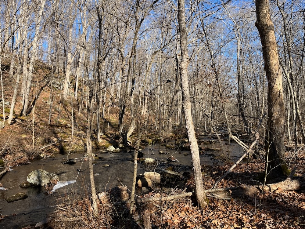 A waterfall! It is unnamed and surely seasonal, but it is also very pretty. But because of its unnamed and seasonal status, I saw no need to pick my way across Stonehouse Brook to climb up to a better vantage point. This is all you get of that falls: