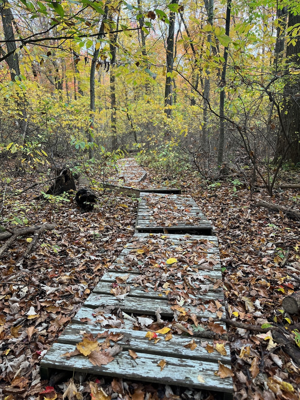 Also impressive? The trailhead kiosk. And the trail itself is as well for the first 4/5 of it heading counterclockwise. There is a cut-off trail or two, but I stuck to the outermost loop (Orange Trail to White Trail to Orange Trail.) This got me a whopping flat 3/4 mile at most. The trails are blazed way better than they ought to be and there are even nice little boardwalks to traverse the wetter areas.