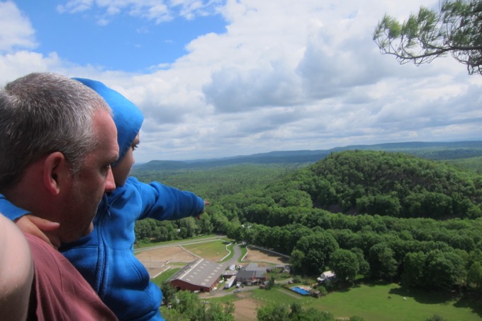 Yes, down below is the Valkyrie Equestrian Center, which, being an equestrian center, does indeed have horses. Despite my stern warnings about the cliff, Calvin kept insisting he wanted to “Go down ‘dere” to see the “horsies.” Like, he wanted to go right over the cliff. Even Damian, whose butt was glued to the rock I had told him to glue it too, was behind us saying, “Don’t do dat. It’s dangerous. Don’t do dat.”